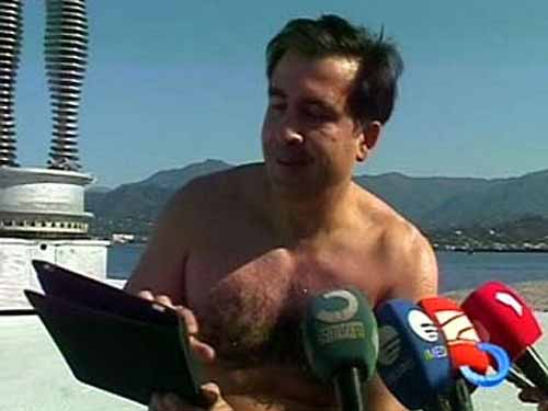俄媒体报道认为,萨卡什维利“赤膊”接受记者采访“明显是效仿普京进行的炒作”。此前,普京还是俄总统时在西伯利亚赤膊打鱼的照片曾引起关注,随后奥巴马同样的“赤膊照”也震惊了世界。