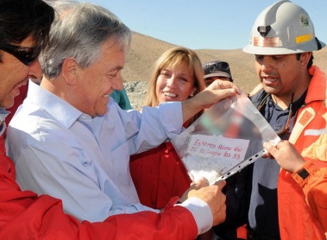 今年8月,智利科比亚波市附近的圣何塞铜矿落石导致矿坑坍塌,33名矿工在深700米的地底被困。数天后,救援人员在收回深入矿坑的探测器上发现了矿工所写的字条。