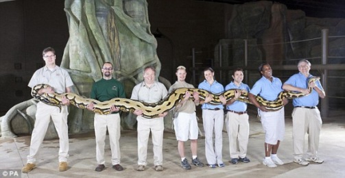 报道称,有记载以来,全球最长的圈养活蛇是1912年印度尼西亚抓到的32英尺(约合9.75米)长的一条蛇。