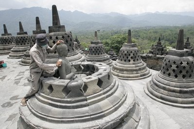 据报道,由于位于中爪哇省马格朗县日惹东北32公里的默拉皮火山26日开始大规模喷发,位于邻近地区的婆罗浮屠佛塔也被大量火山灰覆盖。当局从当日起就对景点实行限进措施,并组织专人清扫覆盖在佛塔建筑上的火山灰。