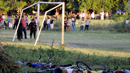 报道称,这些青年当时正在足球场上比赛,突然有人用自动步枪向他们扫射,当场打死数十人。