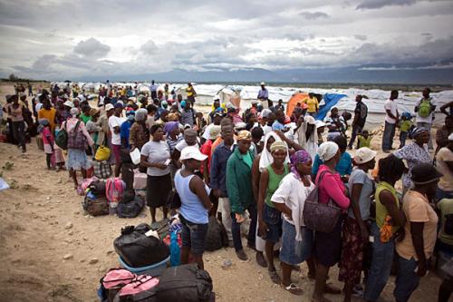 报道称,时速85英里(约合137公里)的狂风卷携着暴雨袭击了海地首都太子港以西的小城莱奥甘,一些在地震后搭建的临时帐篷被洪水淹没。灾民们只能淌着齐腰的洪水向地势较高的地方转运物资。与此同时,人道主义救援人员也在紧急组织灾民向安全地区转移。