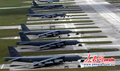 目前美海、空军在关岛部署了大量的先进武器装备。美空军在关岛组建了一个“全球打击特遣队”,包括6架B-2隐形轰炸机、12 架KC-135空中加油机、48架F-15E战斗机和1架“全球鹰”无人侦察机。同时,美国最先进的隐形战斗机“猛禽”F-22还定期飞往关岛驻训,且未来将永久部署关岛。