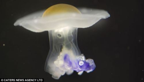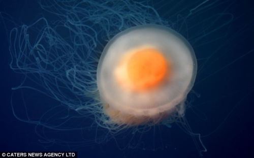 照片中,新生水母只有几厘米大小,它们类似鸡蛋的身躯令人们惊奇不已。