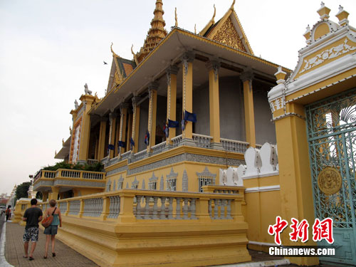 虽然时值柬埔寨全国哀悼日,中新社记者25日在金边街头仍看到不少西方游客参观当地的名胜古迹。