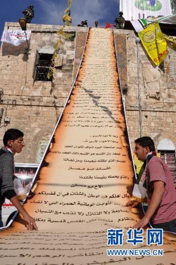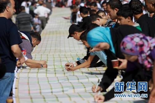 约3万名巴勒斯坦人28日在约旦河西岸城市图勒凯尔姆联名签署一封长达250米的书信,呼吁以色列释放其关押的巴勒斯坦人。
