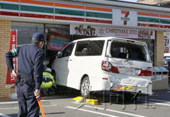 据警方透露,乘用车正准备进入便利店前的停车场时被后面的卡车追尾,乘用车司机在撞击下误踩油门导致冲进店内。