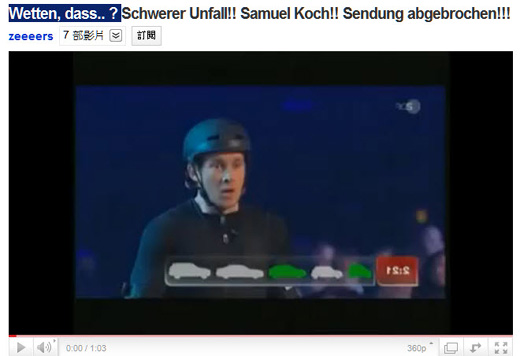 中新网12月7日电 据台湾“联合新闻网”7日报道,德国高人气、同时也是全欧洲最多观众的电视直播节目《想打赌吗?》(Wetten, dass?)上周六(4日)晚间惊传特技意外。