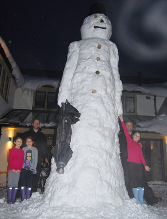 中新网12月10日电 据每日邮报报道,英国北约克郡一家庭堆出一个高16英尺(约5米)的雪人。这或许是英国当前最高的雪人了。