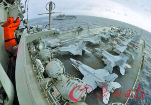 日本海上自卫队“宙斯盾”护卫舰和刚刚参加完韩美联合军演的美国“乔治·华盛顿”号航空母舰将参加军演。