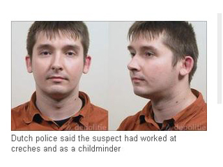 据悉,“罗伯特 M”原本并不是荷兰人,是在2004年与阿姆斯特丹一男子结婚后,才成为荷兰公民。2007年2月至2010年1月间,他至少在两家托儿所中当过代课老师,也曾在网络上应征临时保姆。目前,“罗伯特 M”已坦承犯下数十件儿童性侵案,他的37岁伴侣也因持有儿童色情片被逮捕。