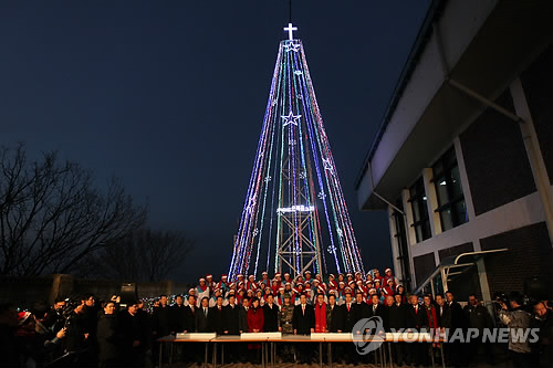 韩国国防部则就点灯一事称,位于京畿道爱妓峰上的圣诞树将会继续点灯到明年1月8日。