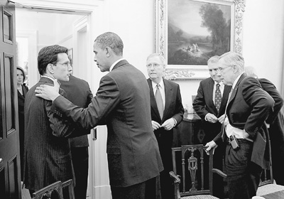 12月6日,奥巴马不顾民主党内部停止延长为富人减税的呼声,宣布与国会共和党领袖达成一致,同意把前任总统布什推出的个人所得税减税政策延长两年。此举在民主党内引起强烈反弹。为此,奥巴马不惜放下身段,于12月10日将昔日政敌、前总统克林顿请至白宫密商,随后请克林顿为其所做出的妥协举措进行游说。