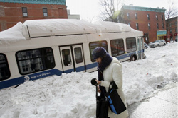 美国今年入冬以来最大一场暴风雪不但严重影响东北部空运,也导致铁路交通中断、公路交通堵塞。美国全国铁路客运公司(Amtrak)纽约─波士顿列车原本停驶,27日已部份恢复营运。纽约市两天内积雪量达50厘米,包括联合国总部在内的多个机构27日也关闭一天。在马萨诸塞州、新泽西州、纽约市等地,仍有成千上万的家户断电。暴风雪造成的交通事故已造成5人丧生,过半地区的道路与市街仍遭“雪封”。