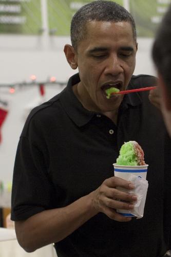 此前,媒体还拍到奥巴马和家人在海滩享用刨冰的场景。