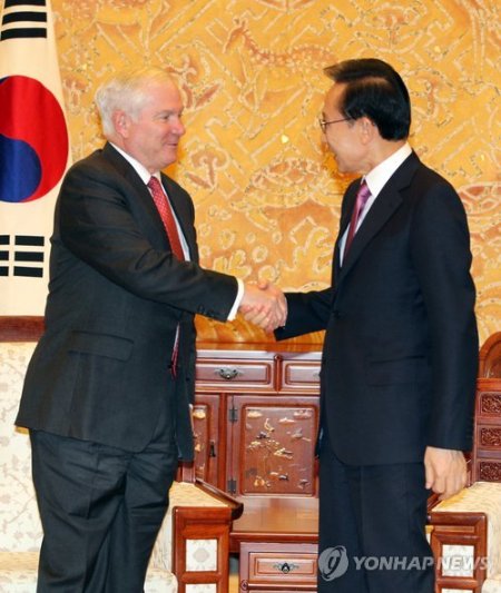 中新网1月14日电 据韩联社报道,韩国总统李明博14日在青瓦台同到访的美国国防部长盖茨举行会晤,就朝鲜问题等朝鲜半岛安全局势,交换了意见。