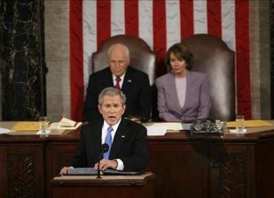 美国总统布什在国会第八次发表他的国情咨文,这也是他任内的最后一次。