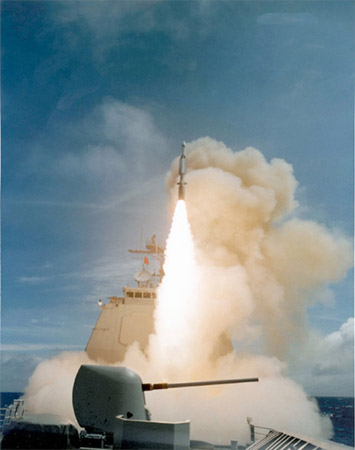 美海军“宙斯盾”导弹巡洋舰发射“标准3”拦截导弹(资料图片)