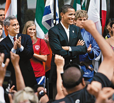 奥巴马出席芝加哥申办奥运的活动,支持者热情欢呼。