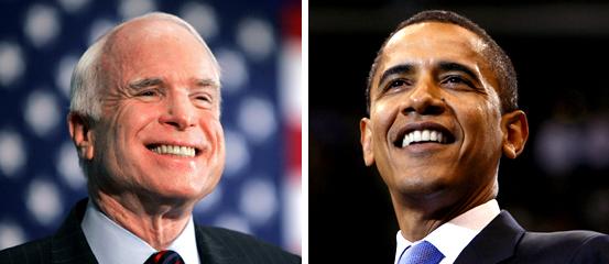 美国共和党总统竞选人麦凯恩(左)与民主党总统竞选人奥巴马(右)。
