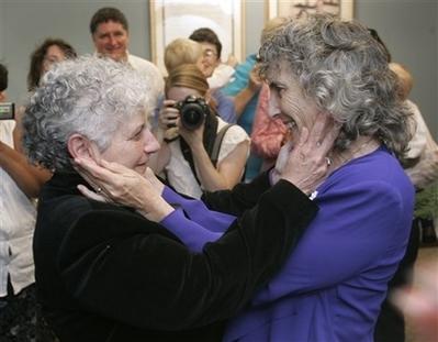 16日,一对共同生活了34年的女同性恋人在加州合法结婚。
