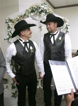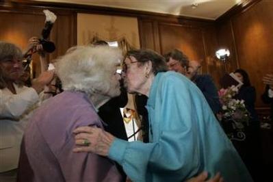 据美国《明报》报道,66岁的泰勒跟54岁同志情人奥尔森,多年来一直争取同性婚姻权利,正是他们的上诉,最终促成加州最高法院推翻州政府的同性婚姻禁令。两人已准备在16日下午5点01分结婚,成为洛杉矶县区首对正式同志“夫妻”。泰勒说﹕“我们准备在法院外结婚,因为这是我们多年来斗争的地方,在这儿结婚宣布‘我们胜利’,无疑是美妙的事。”在加州同志胜地西好莱坞,有酒店表示,在最高法院上月裁定同性婚姻合法后,入住率不断攀升,“我们17日的房间差不多已经订满,未来一周也差不多。以往我们的入住率不会这样高。”