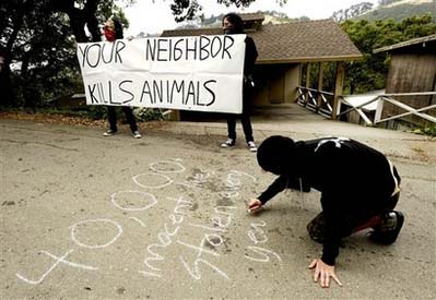 据悉,动物保护主义者目前越来越流行借用“反堕胎”游行惯用的战略:到家门口去抗议。