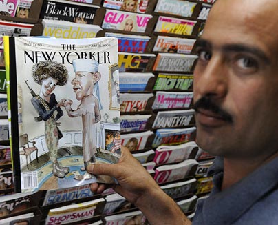 中新网7月16日电 在最新一期《纽约客》杂志封面上,美国民主党准总统候选人奥巴马与妻子米歇尔被描绘成伊斯兰恐怖分子,引起奥巴马和共和党准总统候选人麦凯恩两个阵营同声挞伐;姑不论这幅讽刺漫画本身是否妥当,但它引起的反应却颇值得探讨。