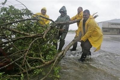 加州弗雷斯诺市的群众正在清理被飓风吹断的树枝。