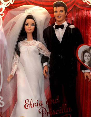据《星岛日报》报道,为了纪念猫王逝世31周年,美泰推出芭比娃娃最新系列:猫王和普丽西拉结婚纪念公仔,首批12日在田纳西州孟菲斯格雷斯兰(Graceland)一家纪念品店出售,每盒65美元。