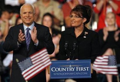 麦凯恩宣布选择阿拉斯加州女州长佩林为竞选伙伴。