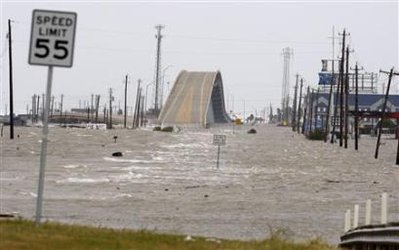 飓风“艾克”带来的洪水淹没了道路。