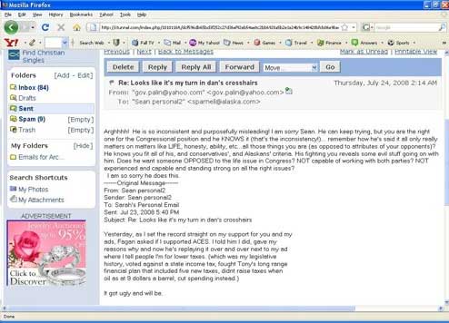 黑客公布佩林信箱中的邮件。