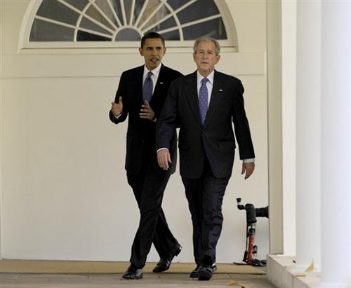 奥巴马访问白宫并与布什会晤 气氛礼貌而又宁静