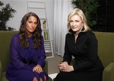 前应召女郎阿什莉.杜普利(左)接受ABC电视台主持人黛安.索耶的采访。