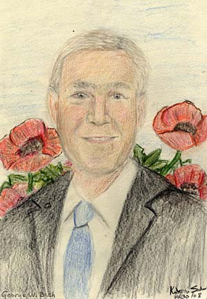 参赛作品中有一幅画让评委们印象深刻,这幅画出自纽约10岁女孩卡特丽娜·萨德弗之手,她画的是红色背景下的总统布什。大红色背景使得整幅画让人眼前一亮。