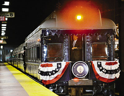 奥巴马昨天在费城的第30街火车站登车,开始他向西南面华盛顿进发的旅程。与林肯不同,因为后者当年由家乡伊利诺伊州出发,需时长得多。奥巴马在出发前的演说中表示,国民要缔造新“独立宣言”,从偏狭的意识形态中团结,又指国家正面对史无前例的挑战。