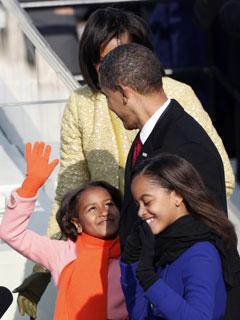奥巴马两个可爱的女儿10岁的马莉娅和7岁的萨莎也成为变化的主人公。在就职典礼上,她们始终落落大方地面对人群和镜头,有礼貌地微笑并挥手。原本认为黑人儿童就是“贫民窟里长大的肮脏、聒噪的捣乱者”的成见也被彻底打破。