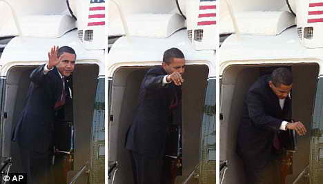 身高1米85的奥巴马9日早上在白宫南草坪搭乘海军陆战队一号直升机时头部碰上了机舱门。他显然错误判断了机舱门的高度,脑袋撞上了机舱门。