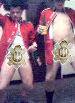这些士兵的主要责任是保卫女王的安全,但他们却在摄像头前暴露自己的身体,一边喝着巴克法斯特酒和苹果酒,一边半裸着身体跳舞。这些士兵据信全部来自格拉斯哥,他们还互相抚摸,身上只穿着军装上衣和袜子。在另一段限制级视频中,一名士兵拍下了他的三名同事和另一名士兵进行鬼混的图像,他还拍打这些士兵的臀部。他们是上周五在伦敦的切尔西军营内拍下这段视频的。