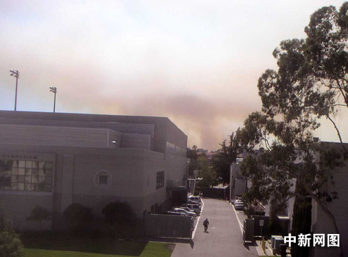 中新网洛杉矶5月8日电 (记者 贾国荣) 洛杉矶市中心的葛瑞菲斯公园今天午后一时许突发不明原因的山火,到下班高峰时依然烟雾弥漫。