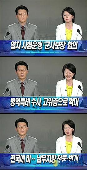 综合韩国《朝鲜日报》等媒体报道,在节目开始时,在介绍标题新闻的过程中,搭档男主持人介绍“姜在涉代表最后的决胜举措”时说“李明博、朴槿惠两位候选人”话讲得有些结结巴巴,张美一就忍不住大笑了出来。