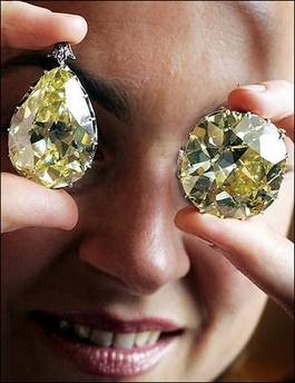 该对黄钻石分别重102.54克及82.48克,均属德国古德亨克尔冯杜内斯马克(Guido Henckel von Donnersmarck)伯爵的家族所有。杜内斯马克伯爵将钻石送给曾当过妓女的妻子派瓦,她通常把两巨钻当作吊坠、手链或头冠佩戴。