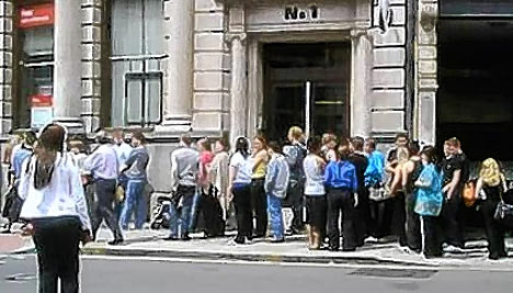 据报道,这个汇丰银行的提款机位于伦敦克勒肯维尔区。由于当日工作人员错误输入了操作模块,提款机将面值20英镑的钞票当成10英镑钞票提供给取款人。这一消息一经传开,许多人蜂拥而至在该机器上提款。