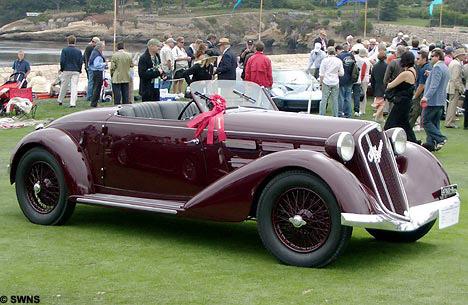 这辆举世无双的两座跑车是阿尔法·罗密欧当年作为礼物送给墨索里尼的,因为在“大萧条”时期,墨索里尼曾对轿车生产业做出过一定贡献——出面干涉使生产商从濒临倒闭的境地“起死回生”。墨索里尼后来将这辆跑车的发动机功率由原来的68马力改进到95马力。