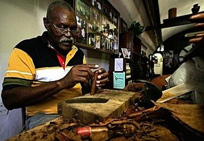 何塞-卡斯特拉5岁就开始卷雪茄,此前曾三创最大雪茄的吉尼斯世界纪录。图为05年卡斯特拉卷雪茄时的情景。