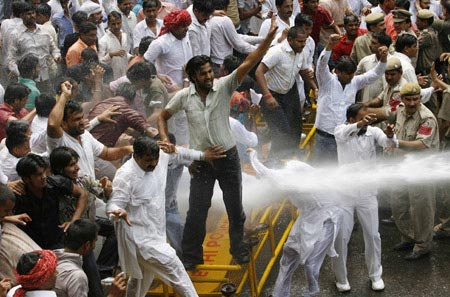 暴乱中,数千示威者封锁了通往首都新德里的道路,威胁切断牛奶、蔬菜供应。印度军队和警察在围剿过程中向示威者开火,造成40余人死亡。然而,瞿族人前仆后继、不惜以生命来抗争的,不是抗议自己种姓低而遭受的歧视,反而是抗议自己的种姓等级不够低。