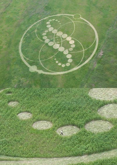 该网友说:“发现麦田圈的地方是人迹罕至,杂草丛生的野地,从路边用肉眼几乎无法识别,爬到梯子上才能稍微看得出凹凸有致来。”他接着补充说,直径长达200米的图案交错有致,让人联想起太阳系,中间有DNA形状的花纹。