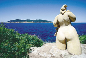 远望大海的裸体者雕像。