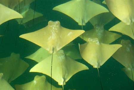 金色黄貂鱼在墨西哥海湾中结队迁徙